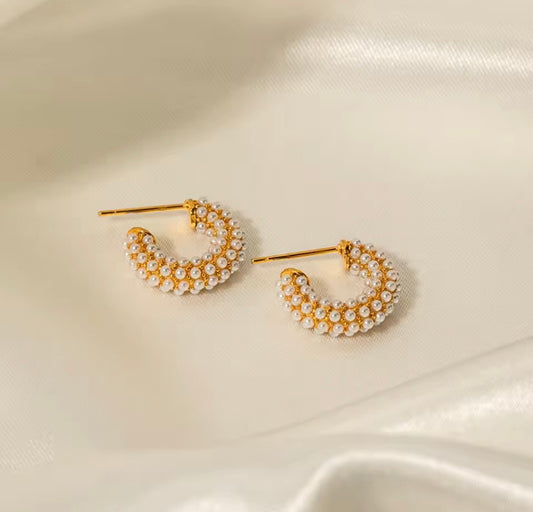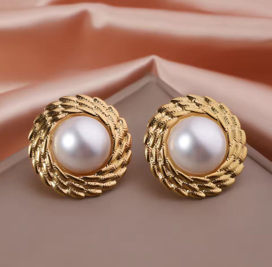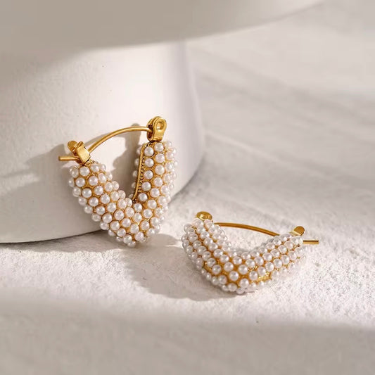 Geometric Pearl Gold Earrings