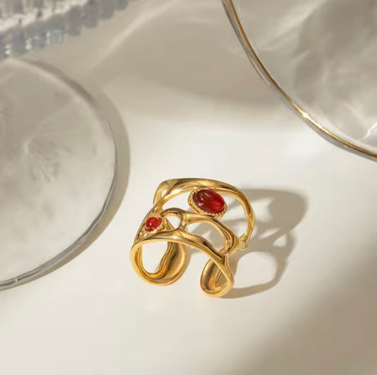 Modernist Ruby Wave Adjustable Ring
